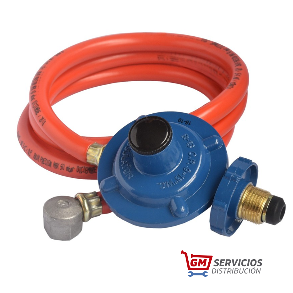 Presión de Entrada MIN. 0.7 bar (10.2 psi). Presión de Entrada MÁX. 7 bar (100 psi). Presión de Salida 28 mbar (11.2 “c.a.). Caudal con presión de entrada MÍN Caudal 0.61Kg/h GLP. Conexión Entrada Volante 7/8 NGO Conexión Salida Mang 1,5m T1 con codo 3/8 NPTh